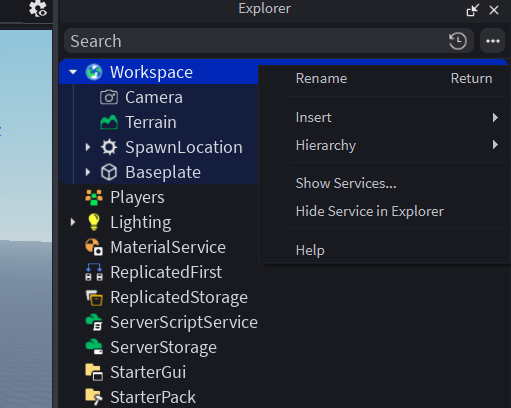 ※ 언어가 한국어여도, 버튼 위치는 동일합니다. (Workspace 우클릭 - 삽입 - Roblox 모델 가져오기)